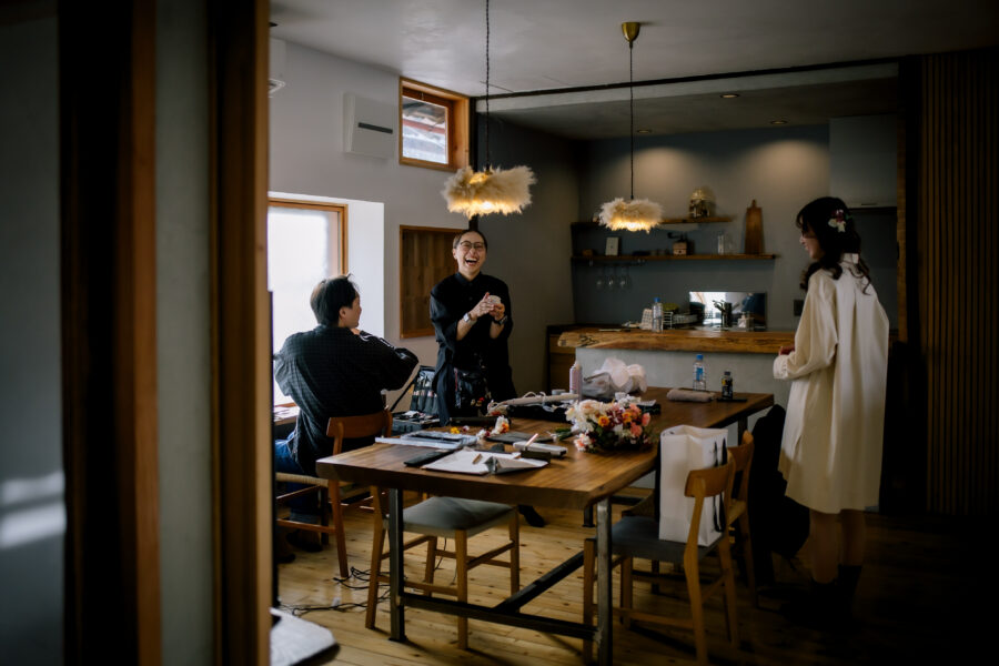 旅の風景やおふたりの雰囲気に溶け込むようなスタイリングのご提案、作りすぎない美しさやその人らしさが自然と滲むヘアメイクとリラックスした表情を引き立てるためのサポートを心がけています。
